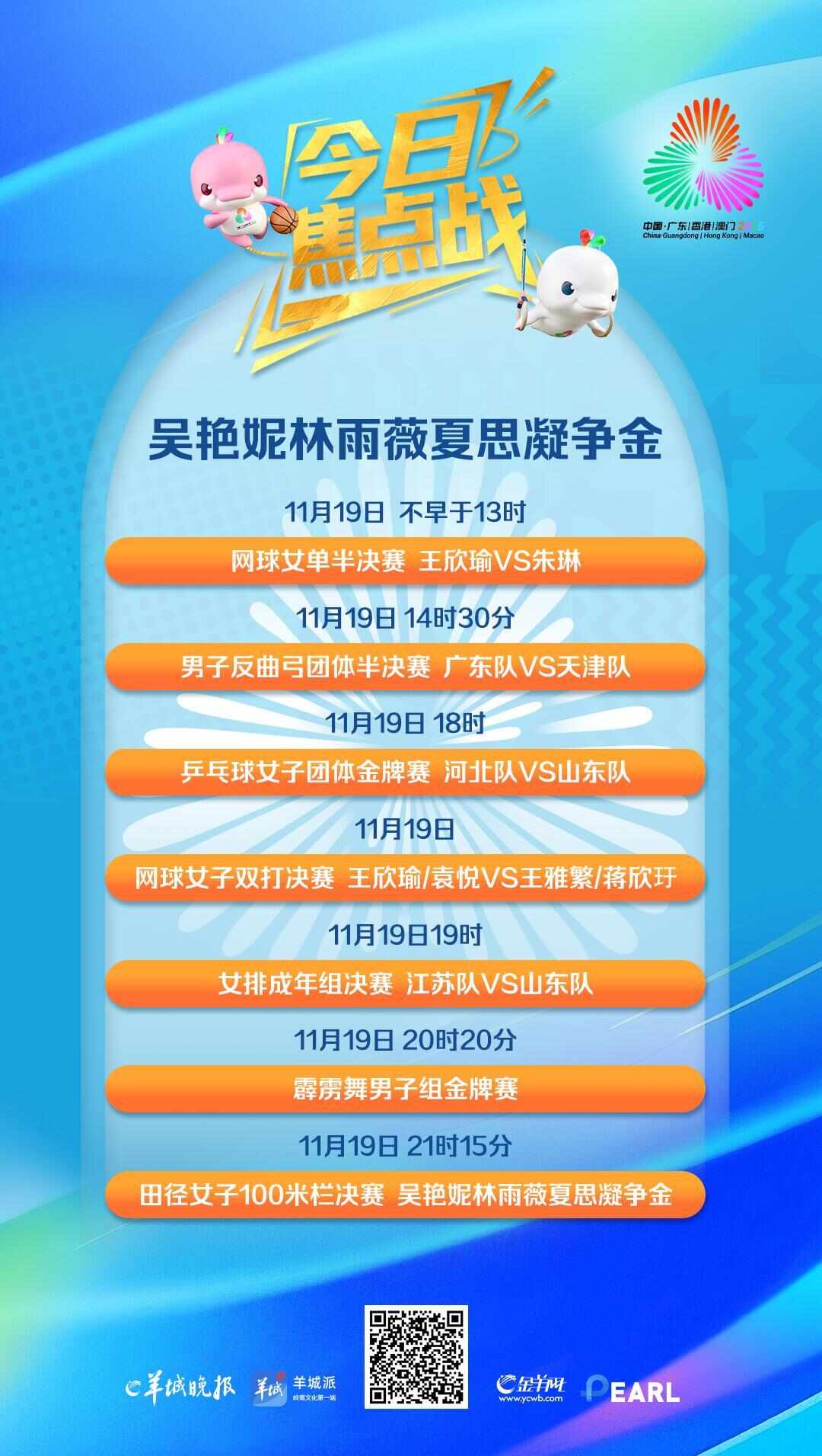 11月19日,第十五届全运会的重头戏将进入第十天的比赛。从晋级悬念到奖牌争夺,诸多精彩的比赛将上演。田径、乒乓球、网球、排球、霹雳舞等项目将产生29枚金牌。田径项目将产生九枚金牌。百米栏比赛中,人气与实力兼备的吴燕妮、林雨薇、夏斯宁率先亮相预赛,挑战决赛门票。男子110米栏比赛中,陈远江、徐卓毅、谢文军、刘俊谦等选手亮相上午预赛,争夺晋级决赛的机会。男子跳马决赛中,广东选手黄博凯成为金牌有力争夺者。网球项目将进行单打半决赛,并在男双和女双中争夺两枚金牌。在半保真男子半决赛,北京队张忠诚对阵广西队周毅。两人在本届全运会青少年组比赛中展开对决。此次全运会男子半决赛将是两人的第二次交锋。浙江队吴易昺对阵香港队黄泽林。女子半决赛,广东队的头号种子王新宇将与安徽队的三号种子朱琳争夺决赛名额,而天津队的杨艺迪将对阵北京队的高新宇。男双决赛,浙江组合卜云朝科特/郑展对阵江苏组合唐升/孙茜。女双决赛中,广东组合王新宇/袁悦对阵四川组合王雅繁/蒋欣悦。男子霹雳舞组的比赛今天开始。巴黎奥运会选手、成都世运金牌得主、山东队齐翔宇、2024年世锦赛男季军王瑞淼、2023年亚锦赛亚军尚晓宇等多名代表中国顶级霹雳舞的选手将亮相资格赛,争夺淘汰赛席位,向全运会金牌发起进攻。乒乓球项目设女子团体铜牌赛和金牌赛两项比赛。金牌争夺战在河北队与山东队之间展开。由奥运冠军陈梦领衔的山东队昨天经历了两场五局激烈的比赛。河北队在孙英哈的带领下,包括何卓佳、王天一等名将,晋级之路一帆风顺。击剑赛场将决出男子花剑团体和佩剑团体冠军。男子花剑团体赛中,香港队张嘉朗、蔡俊彦实力强劲。本届赛事他们将挑战球队首个全国冠军ent.卫冕冠军福建队将全力捍卫荣誉。广东队和江苏队也很强。此前,女子佩剑个人比赛中,江苏选手杨恒宇、傅莹、钱嘉瑞包揽前三名。江苏队在女子佩剑团体比赛中并没有实力较强的招数。文字|记者刘毅实习生吴千羽美术编辑|范英兰摄|新华社资料图